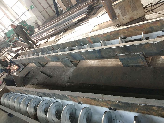 無(wú)軸螺旋輸送機(jī)的螺旋葉片有實(shí)體螺旋面、帶式螺旋面和葉片螺旋面三種形式,其中,葉片式螺旋面應(yīng)用相對(duì)較少,主要用于輸送粘度較大和可壓縮性物料,這種螺懸面型,在完成輸送作業(yè)過(guò)程中,同時(shí)具有并完成對(duì)物料的攪拌、混合等功能。
